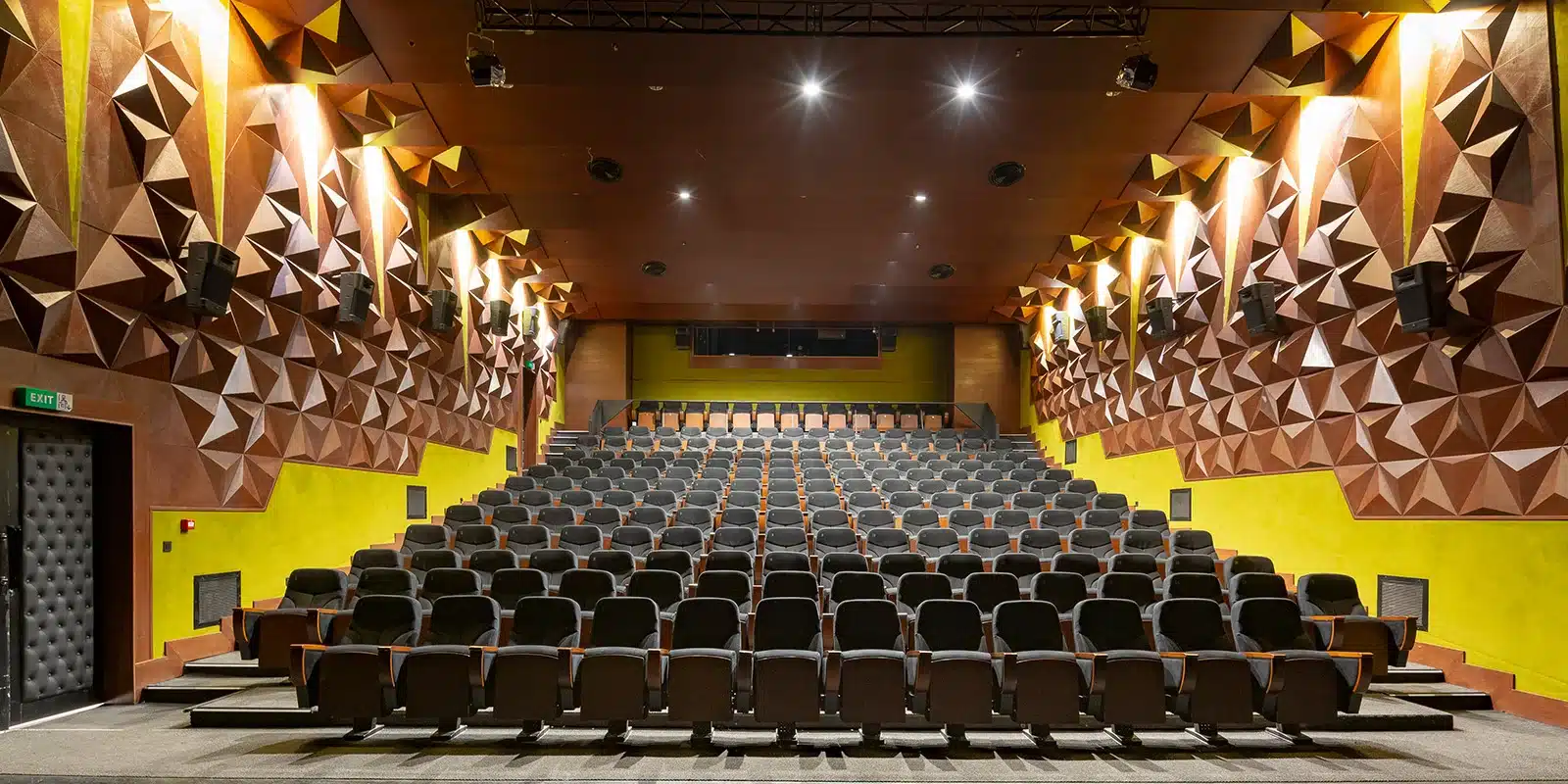 | طراحی آکوستیک برای سالنهای بزرگ | انجام محاسبات آکوستیک دقیق و استفاده از پنلهای آکوستیک با جذب صدای بالا برای جلوگیری از نویز و اکو در سالنهای سینما. |
