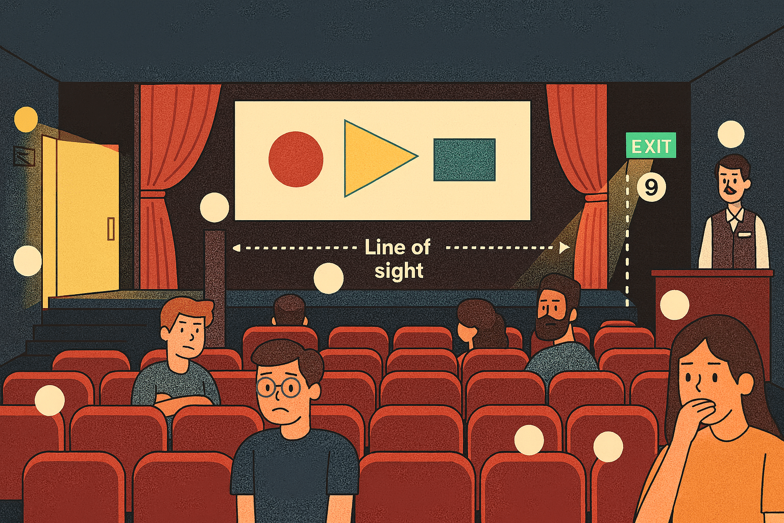 | تأثیر طراحی مخرب سالن | کاهش کیفیت تجربهی سینمایی، خستگی و نارضایتی تماشاچیان، کاهش احتمال بازگشت |
